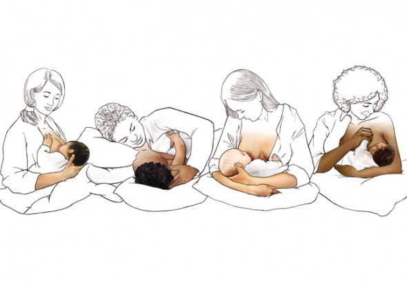 Además de la diversidad de posiciones, un aspecto importantísimo recae en el agarre del pezón que permite la succión adecuada de la leche. En la imagen siguiente puede observar como debe ser.